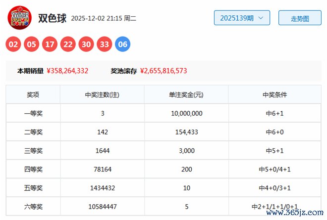 开奖转头:第2025139期双色球奖号为02、05、17、22、30、33+06。区间比:2:2:2,奇偶比:3:3,首尾间距:31。